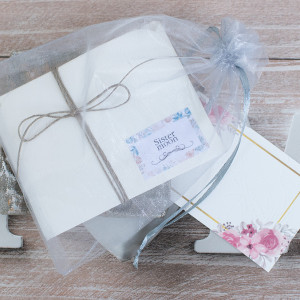 Opakowanie: karta produktowa z opisem, kartonowa kopertka, woreczek z organzy.