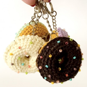 Apetyczny breloczek w formie słodkiego pączka z dziurką, oblany polewą (różne kolory), oprószony kolorową posypką. A całość ma ZERO kalorii! :)