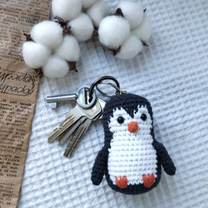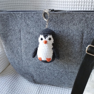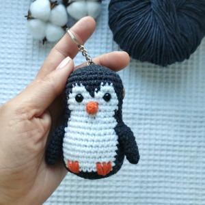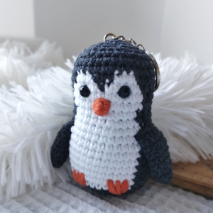 A pingwinek mimo, że nie jest wielki, wszystko ma na swoim miejscu ;) czarno-białe ciałko, mały dziubek i skrzydełka. Jego wielkość to ok 9 cm + łańcuszek i kółeczko.