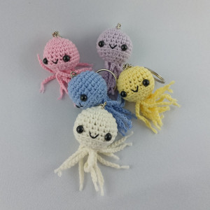 Ręcznie robiony szydełkowy brelok meduza. Znajdziesz go również w innych kolorach w pozostałych ofertach w naszym sklepie. Piękna ozdoba do kluczy, torebki czy plecaka. Posiada wypełnienie antyalergiczne.
