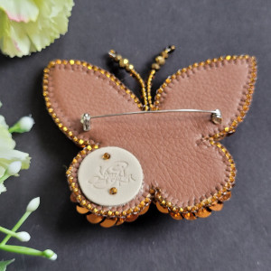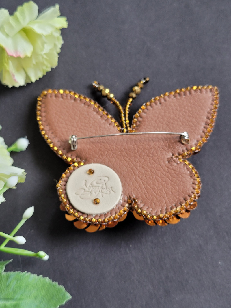 Ekskluzywna broszka "Motyl żółto-brązowy" – ręcznie robiona