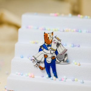 Piękna broszka z kocią parą, ręcznie rysowana, zabezpieczona lakierem ekologicznym. Powierzchnia broszki jest błyszcząca.Na lakierowanej powierzchni mogą występować małe pęcherzyki powietrza.