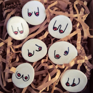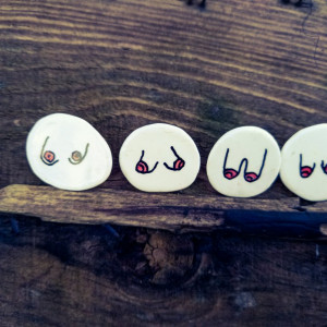 Zabawna Broszka "biust 1" wykonana z masy polimerowej , zabezpieczona werniksem Wielkość 2,5 cm Zapraszam :)