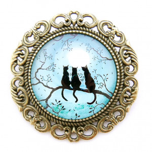BROSZKA W STYLU VINTAGE Z KOCIM MOTYWEM
