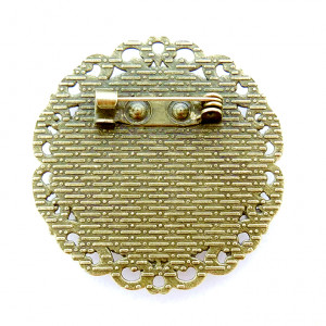 Przypinka w metalowej oprawie stylizowanej na stare złoto.
