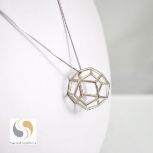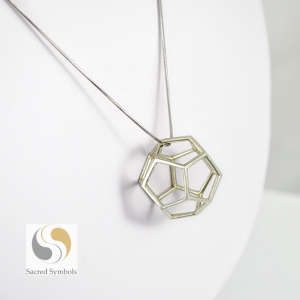 DODEKAEDR to bryła o dwunastu ścianach w formie pięciokąta - jedna z pięciu tzw. Brył Platońskich. Jest połączeniem energii męskiej i żeńskiej w aspekcie ludzkim. Reprezentuje miłość i współczucie, delikatność i ciepło. Symbolizuje Boskie połączenie, wszechświat, spełnienie i Jedność, element (Żywioł) Eteru/Prany. Astrologicznie jest to związane z pełnym zodiakiem. Budowa DNA opiera się na dwunastościanie foremnym. Budowa dwunastościanu foremnego opiera się na Złotym Podziale, a ten z kolei na liczbie Phi...