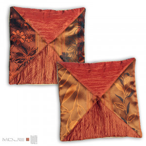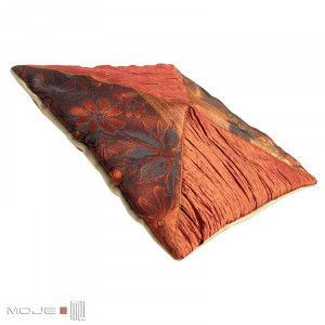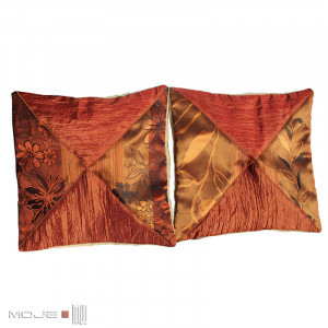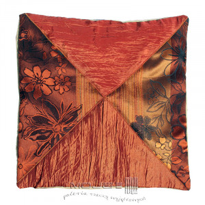 Poszewka dekoracyjna z motywem trójkątów, wykonana z wysokiej jakości materiałów - żakardu i specjalnie miętej tafty. Stanowi atrakcyjny element wystroju wnętrza, ociepla wizerunek i wprowadza wrażenie przytulności. Poszewka utrzymana jest w ciepłych odcieniach pomarańczu, brązu i cynobru. Tył poszewki jest jednokolorowy, zapinany na zamek. Można włożyć do środka standardowy wkład 40 x 40 cm (sprzedawana jest bez wkładu). Do kompletu jest także druga poszewka z podobnym wzorem.