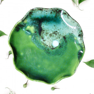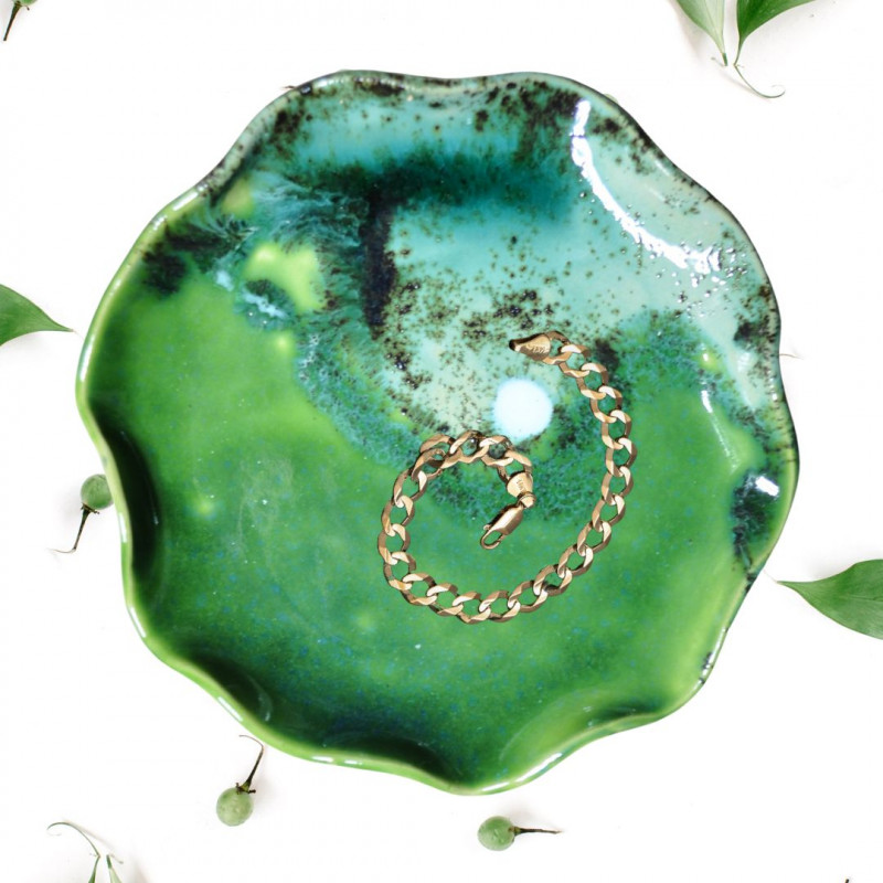 Ceramiczna podstawka na biżuterię Fala zielona 03