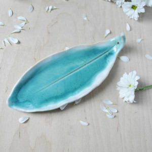 Ceramiczna podstawka na kadzidła Turkusowy Liść