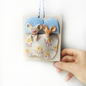 Wymiary: 11 x 13,5 cm wysokości, 20 ze sznureczkiem.