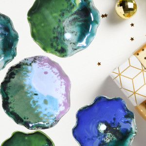 Ceramiczny Talerzyk na biżuterię Fala Indygo