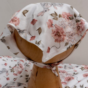 Chusteczkę można wiązać na dwa sposoby, idealnie chroni główkę niemowlęcia przed promieniami UV.