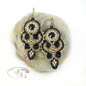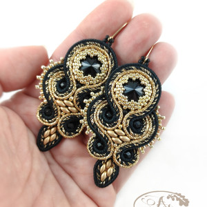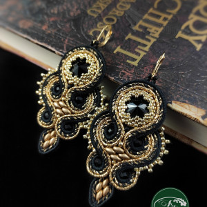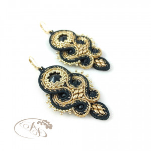 Classic Czerń Złoto kolczyki sutasz karnawałowe