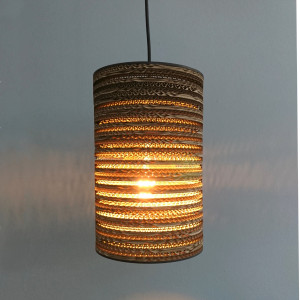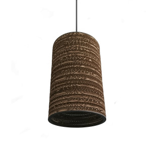 Ekologiczna lampa wykonana z tektury falistej i sklejki brzozowej. Lampa wycięta laserem, sklejana ręcznie klejem nie emitującym szkodliwych substancji oraz zaimpregnowana lakierem akrylowym. Fragmenty lampy wykończone ringami ze sklejki liściastej dodającymi elegancji i zabezpieczającymi przed uszkodzeniami. Lampa wyposażona w kabel z oplotem o długości 1,2 m, czarną rozetkę maskującą i czarną oprawkę przystosowaną do żarówek energooszczędnych E27. Ze względu na ręczne wykonanie każda lampa to produkt unikatowy i może się nieco różnić od egzemplarza przedstawionego na zdjęciach.