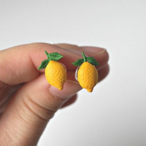 Ręcznie ulepione kolczyki w kształcie cytryn. Wykonane z wysokiej jakości modeliny Fimo i końcówek antyalergicznych (stal chirurgiczna). Są bardzo wygodne i lekkie. Wymiary ok 16mm x 13mm. Kolczyki są wykonane w 100% ręcznie i mogą minimalnie różnić się od przedstawionych na zdjęciu.