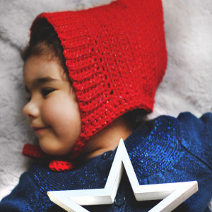Oryginalna stylowa czapeczka dla maluszka typu Pixie Bonnet, przypominajaca czepek/kapturek.
