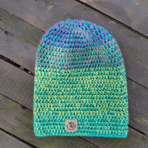 Czapka wykonana ręcznie na szydełku z mieszanki włóczek akrylowych. Delikatna, niegryząca, miękka.