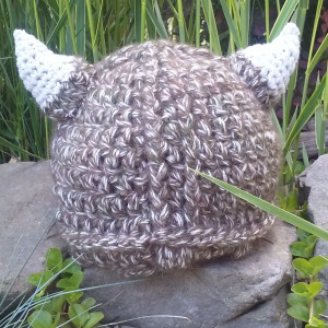 Czapka "Viking" inspirowana hełmem wikingów, wykonana z dbałością o szczegóły. Włóczkowy hełm i groźne rogi wzbudzą należyty respekt;). Doskonały i oryginalny prezent dla dziecka. Czapka na pewno będzie często noszona nie tylko w chłodne dni, ponieważ dziecko chętnie wykorzysta ją również jako rekwizyt dla swoich zabaw. Czapkę można również wykorzystać również do sesji fotograficznej. Rozmiar 42 - 46 cm. Wykonana z ciepłej i "niegryzącej" włóczki. Na życzenie możliwość wykonania podobnej w innym rozmiarze lub kolorze wg Państwa pomysłu.