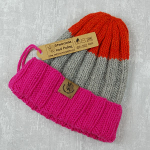 Czapka w paski, wykonana ręcznie na drutach z mieszanki 65% wełny peruwiańskiej i 35% alpaki. Jest bardzo miękka, delikatna, a jednocześnie ciepła. Będzie pasować do codziennych stylizacji, jak również do sportowych. Wymiary: obwód głowy ok. 56-60 długość bez wywijania - ok. 30 cm