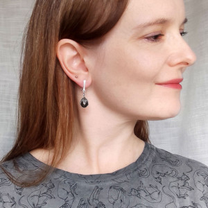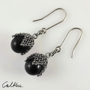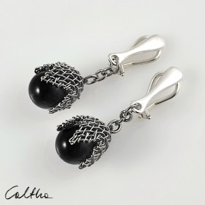 Ciekawe wiszące klipsy wykonane z pięknych szklanych kropli w metalowej siateczce.