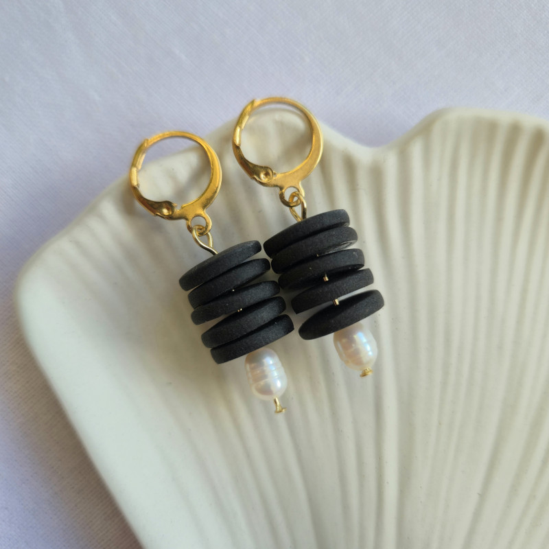 Czarne wiszące kolczyki z perłą