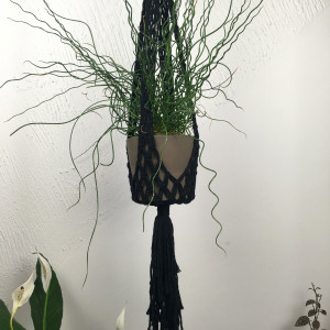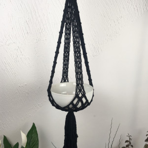 Czarny Kwietnik Wiszący / Makrama / Boho Decor
