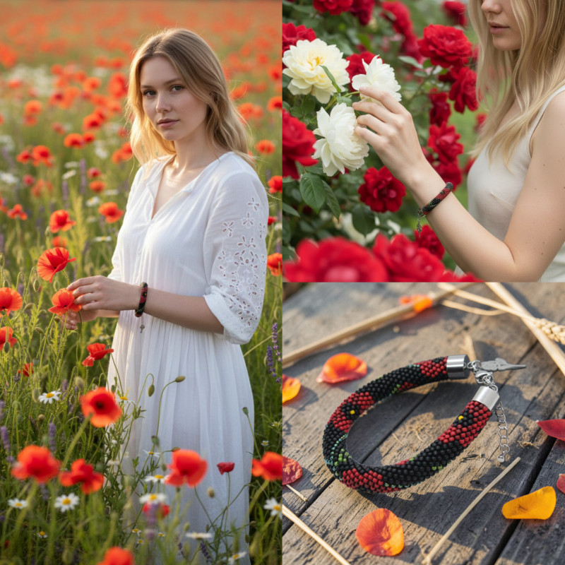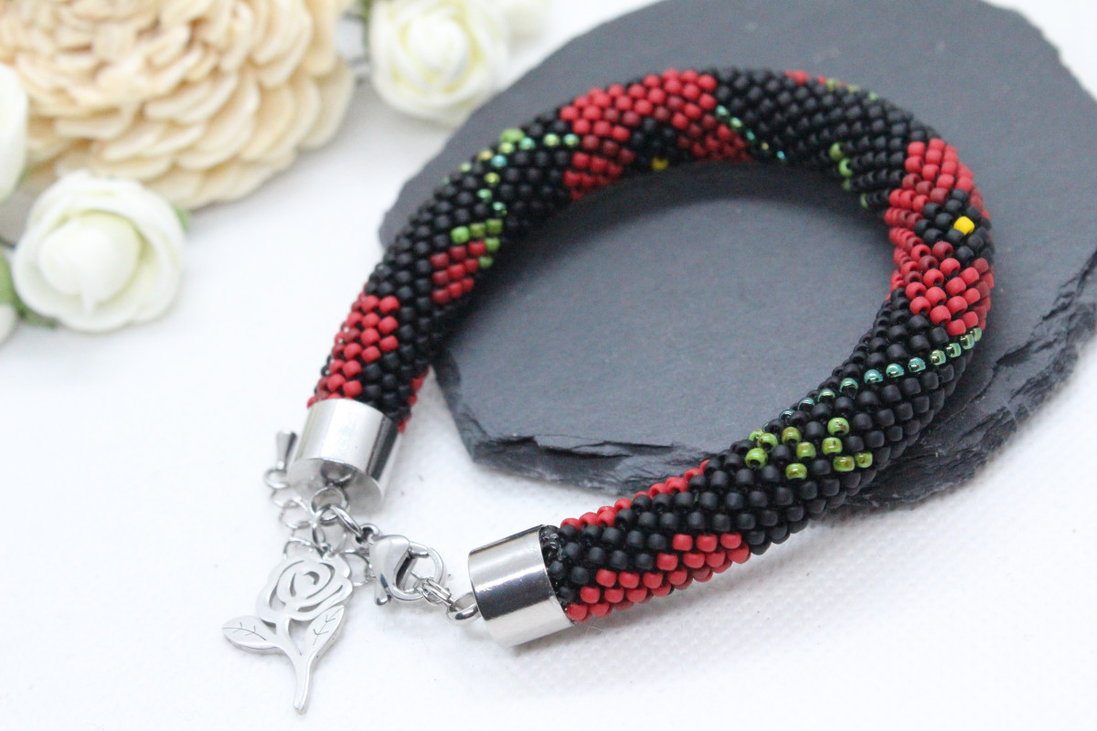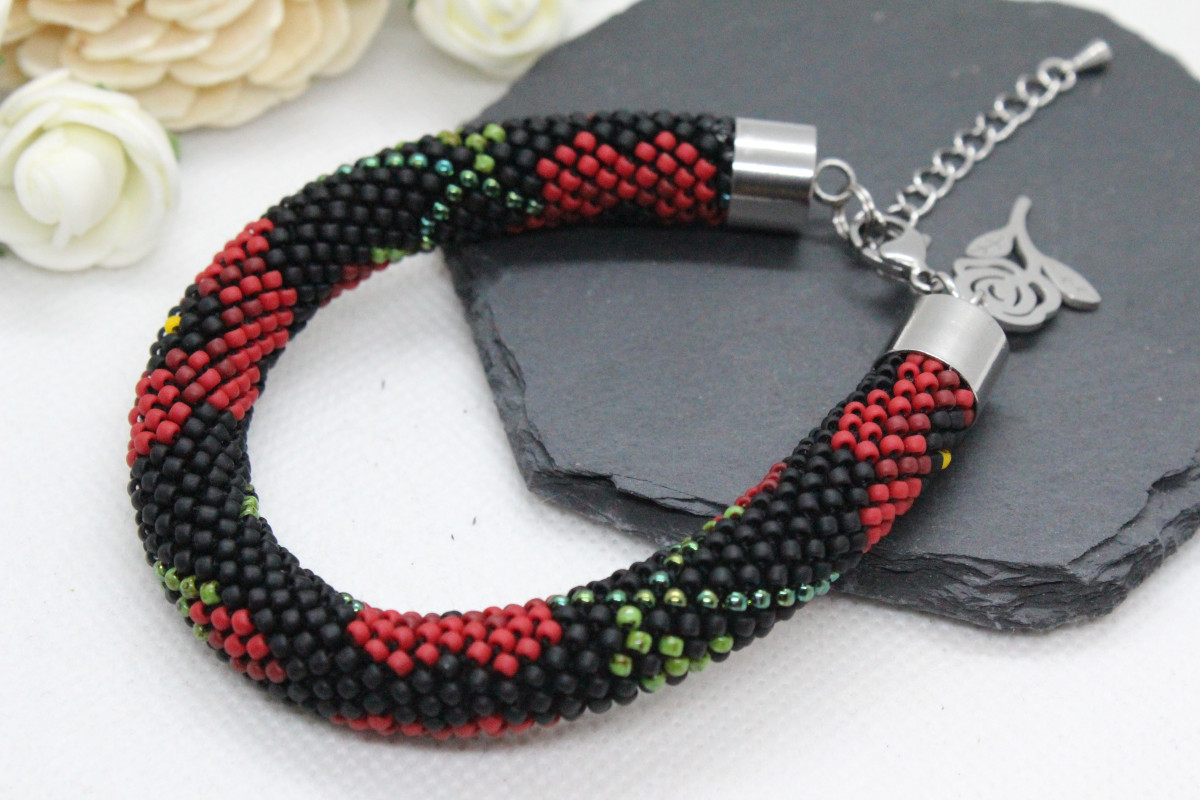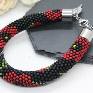- Bransoletka wykonana ręcznie, techniką ukośnika, ze szklanych koralików japońskiej firmy Toho. Są to koraliki bardzo wysokiej jakości - odporne na ścieranie oraz odbarwienie.