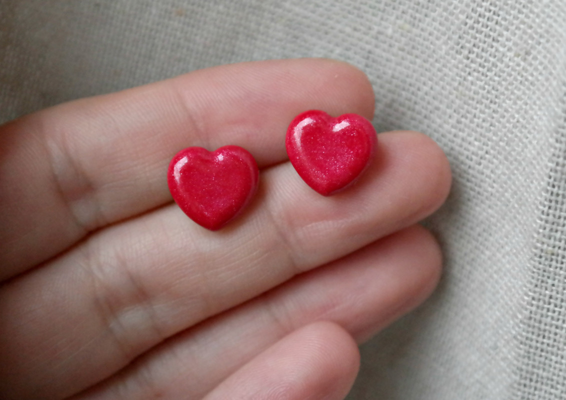 Ręcznie ulepione kolczyki wkręty, wykonane z wysokiej jakości perłowej modeliny Fimo i końcówek antyalergicznych (stal chirurgiczna). Są bardzo wygodne i lekkie. Wymiary ok 10mm x 11mm. Kolczyki są wykonane w 100% ręcznie i mogą minimalnie różnić się od przedstawionych na zdjęciu.