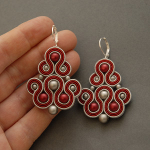 oferuję kolczyki lub klipsy zrobione techniką sutasz, ozdobione matowymi koralami i drobnymi koralikami
