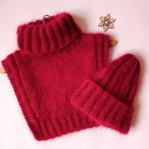Czerwony komplet Komin Czapka z moheru i jedwabiu