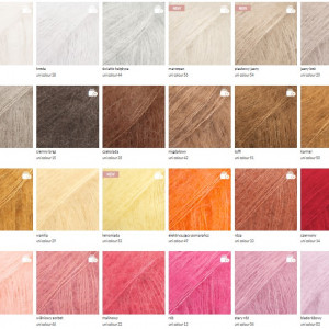 Włóczka ma w składzie moher z długimi włoskami, które mogą łaskotać osoby wrażliwe na tego typu włókna.