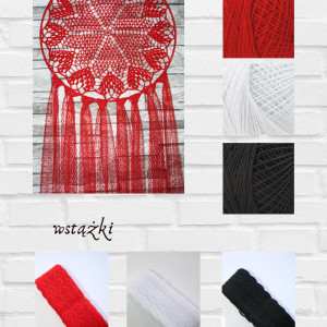 Można dobrać inny kolor koła i wstążek, można również wybrać miks kolorów wstążek, albo inny kolor obręczy i inny szydełkowej części.