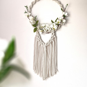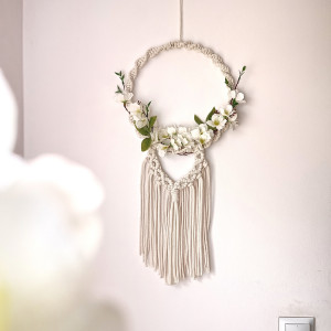 Dekoracja ta pasuje do wnętrza w stylu Boho oraz nordic. To elegancki dodatek na ścianę w sypialni, przy drzwiach wejściowych oraz nad kominkiem.