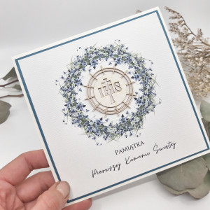 Delikatna kartka komunijna kwiatuszki