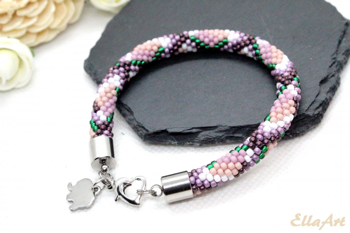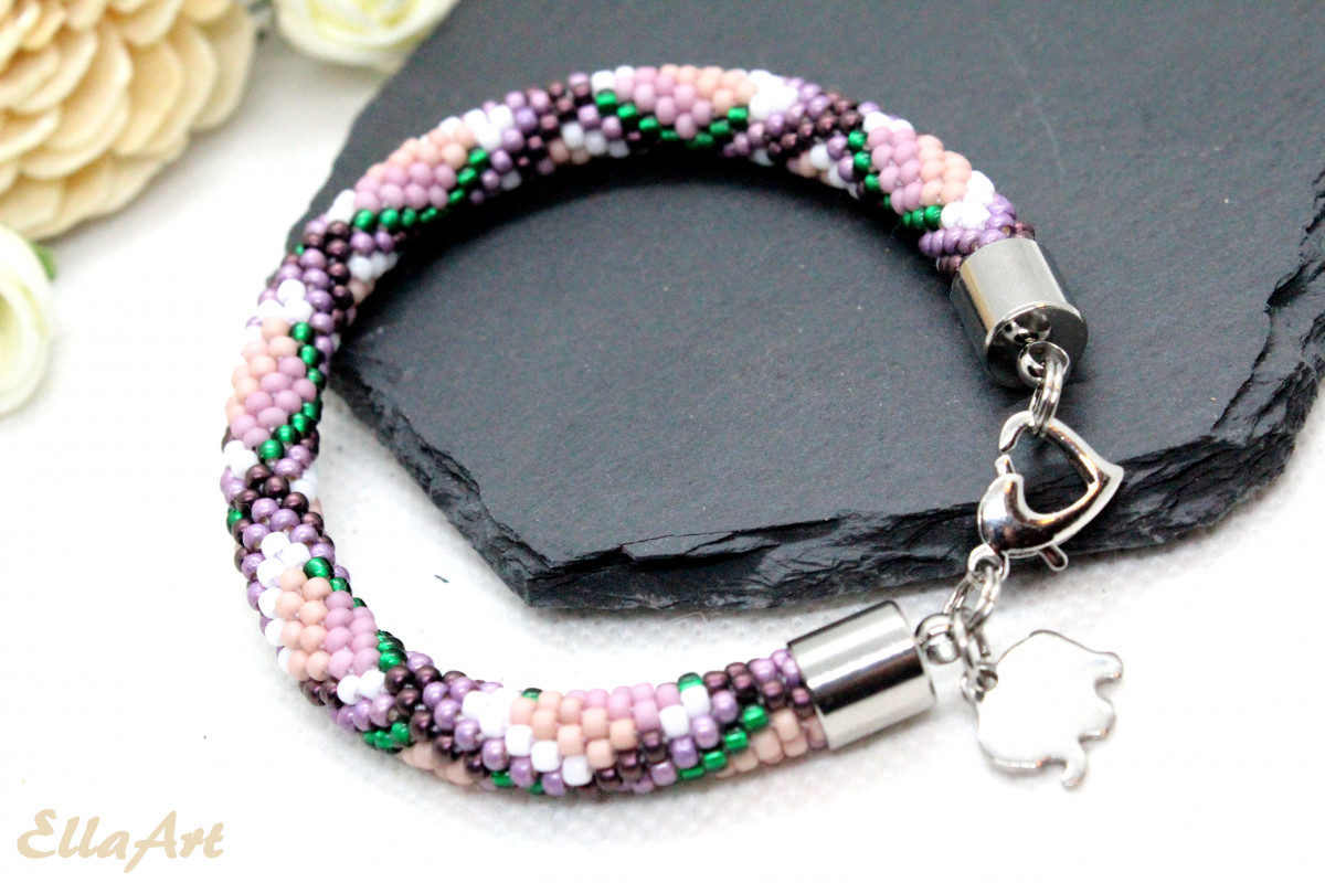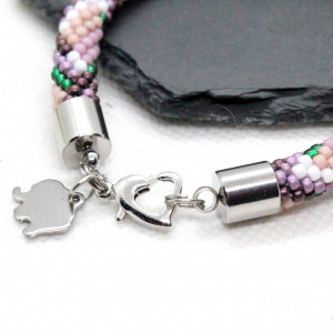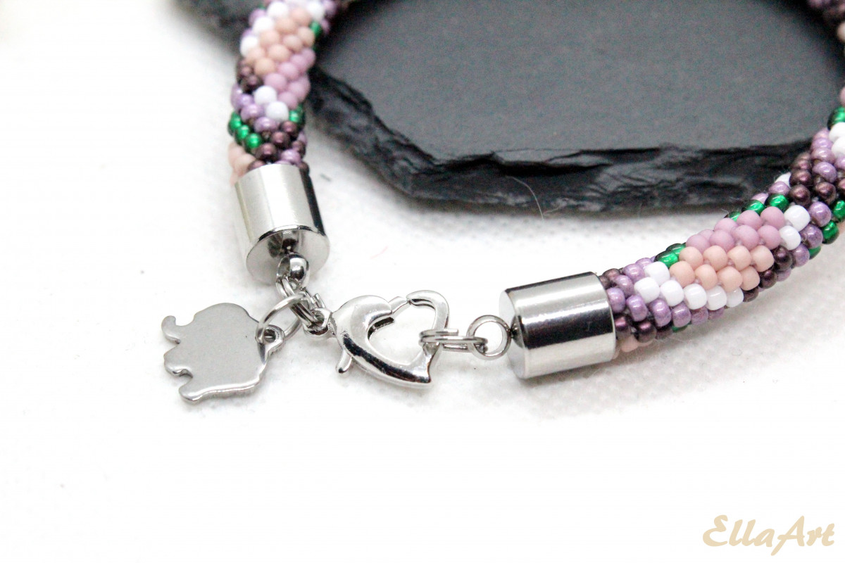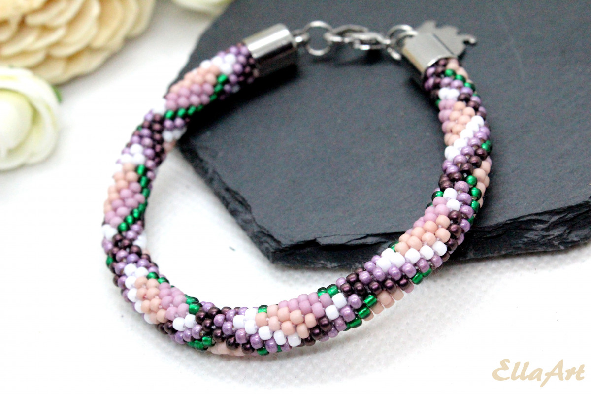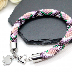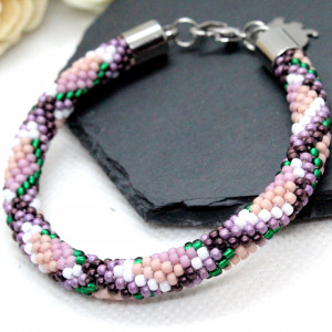 - Bransoletka wykonana ręcznie, techniką sznura szydełkowo-koralikowego, ze szklanych koralików japońskiej firmy Toho. Są to koraliki bardzo wysokiej jakości - odporne na ścieranie oraz odbarwienie.