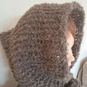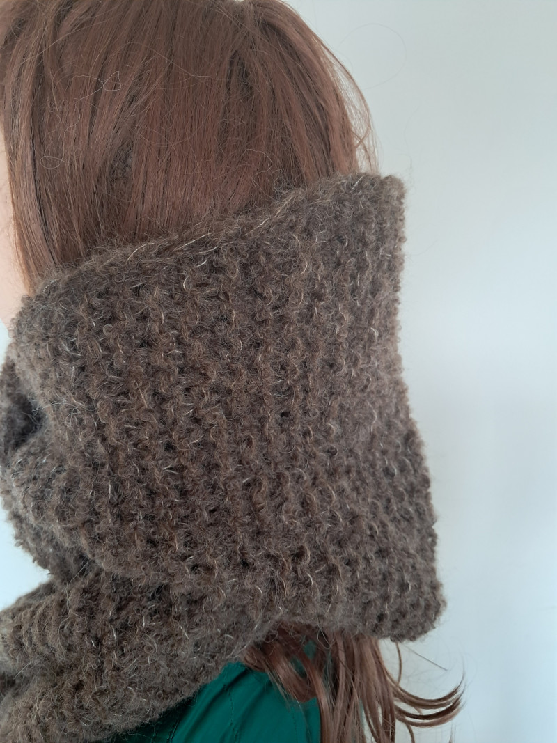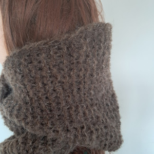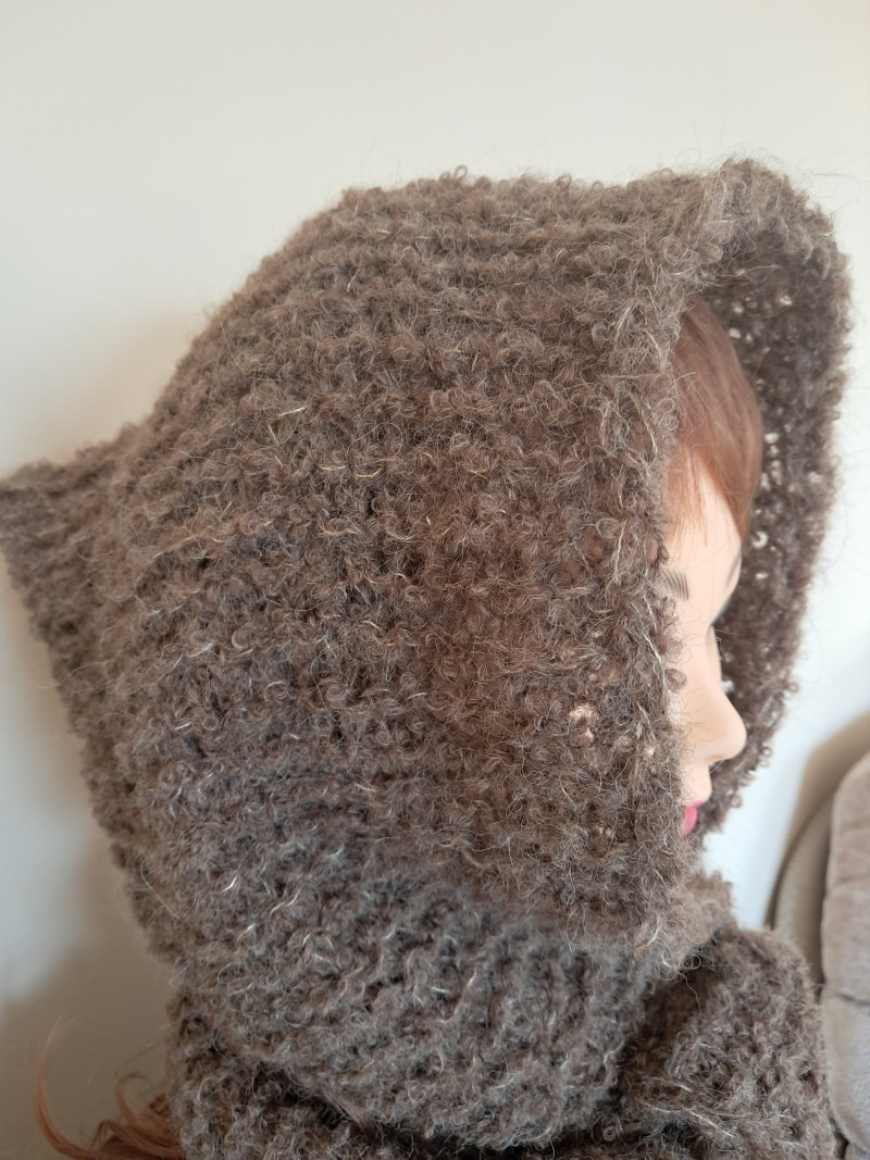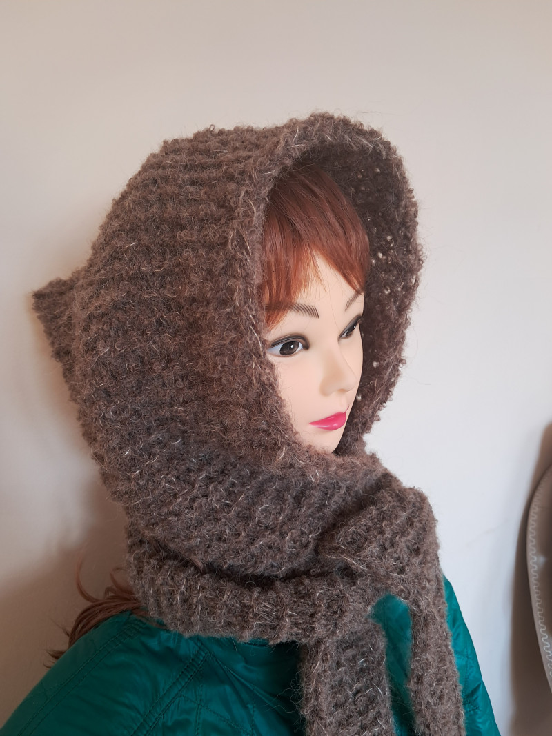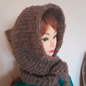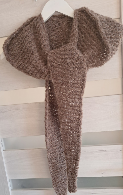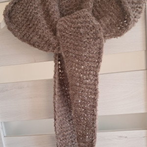 Dlugi welniany szalik z kapturem Alpaka Boucle.Handmade.