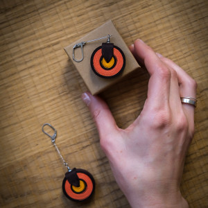 Całkowita długość kolczyków wraz z biglem to około 8 cm. Średnica kół 3,2 cm. Grubość kół 1cm.