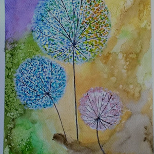 Dmuchawce, akwarela. Format 24 x32 cm.