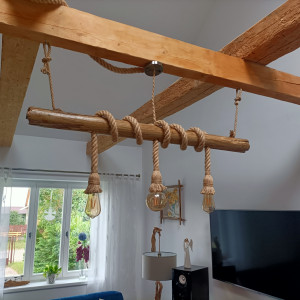 Oprawki E27 oraz przewód pleciony z naturalnej juty.