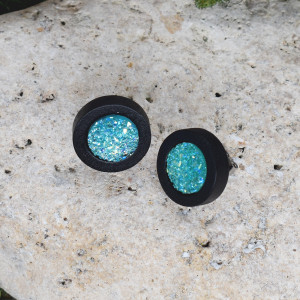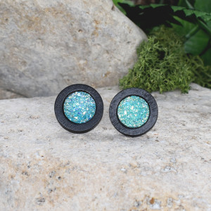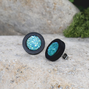 Ręcznie wykonane kolczyki z drewna barwione na czarno ozdobione druzami. Idealne do letnich kolorowych stylizacji boho / hippie.