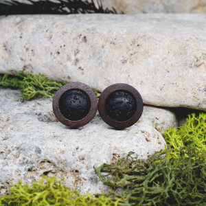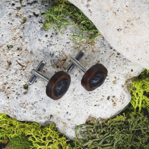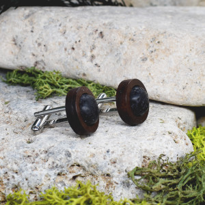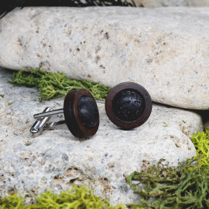 Drewniane spinki do mankietów z lawą wulkan #00018