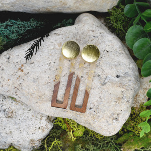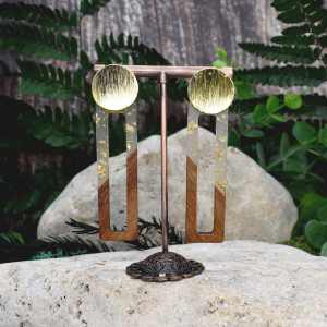 Drewniane wiszące kolczyki ze złotem i żywicą #2