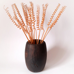Wazon z drewna czereśni, opalany, szczotkowany i wykończony naturalnym olejem.