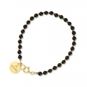 Minimalistyczna i elegancka bransoletka z koralików z onyksu zjedna sobie sympatię zarówno kobiet ceniących dyskretny urok biżuterii, jak i tych chętnie sięgających po wytworne połączenie złota i czerni. Bransoletka sprawdzi się w stylizacjach dziennych oraz wieczorowych, będzie stanowić także idealny prezent dla bliskiej osoby.