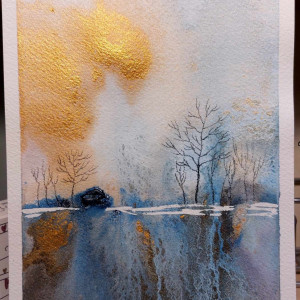 Oryginalna akwarela, wykonana profesjonalnymi farbami akwarelowymi Rembrandt na papierze akwarelowym 300 g/m2 . Praca jest sygnowana. Wymiary pracy :A 5 . Pracę sprzedaję bez oprawy. Kolory mogą się nieznacznie różnić od oryginału, co jest uzależnione od ustawień monitora.