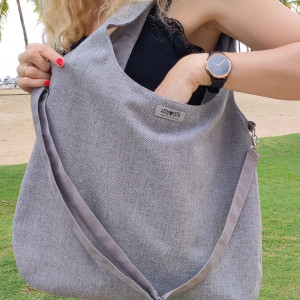 Piękna duża torebka wykonana z plecionego mocnego materiału z dodatkiem eko zamszu,