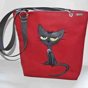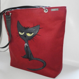 Duża torba ręcznie malowana z kotem