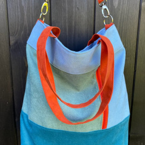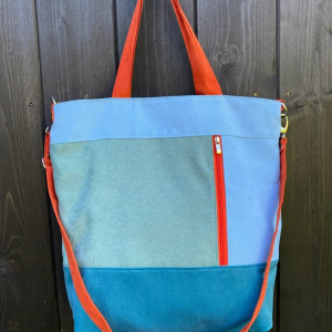 Duża torba z kieszenią na zamek - geometryczna