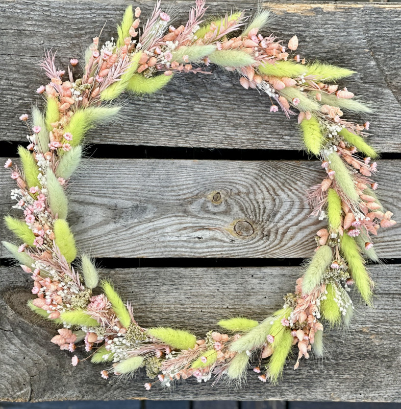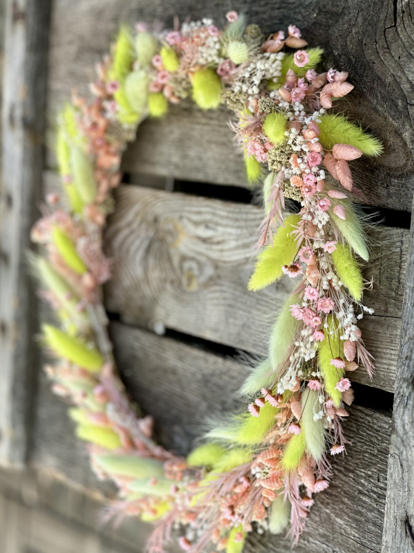 Pamiętaj, by miejsce dla wianka było suche i nie bezpośrednio nasłonecznione - wtedy wianek zachowa swój wygląd przez długi czas.