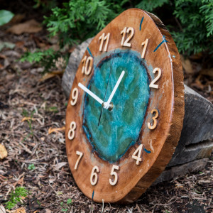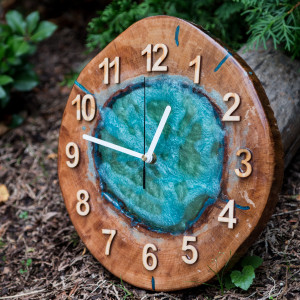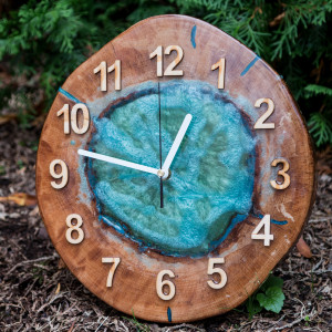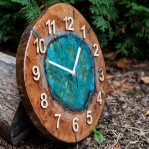 Duży Zegar buk z żywicą epoksydową niebieską D17